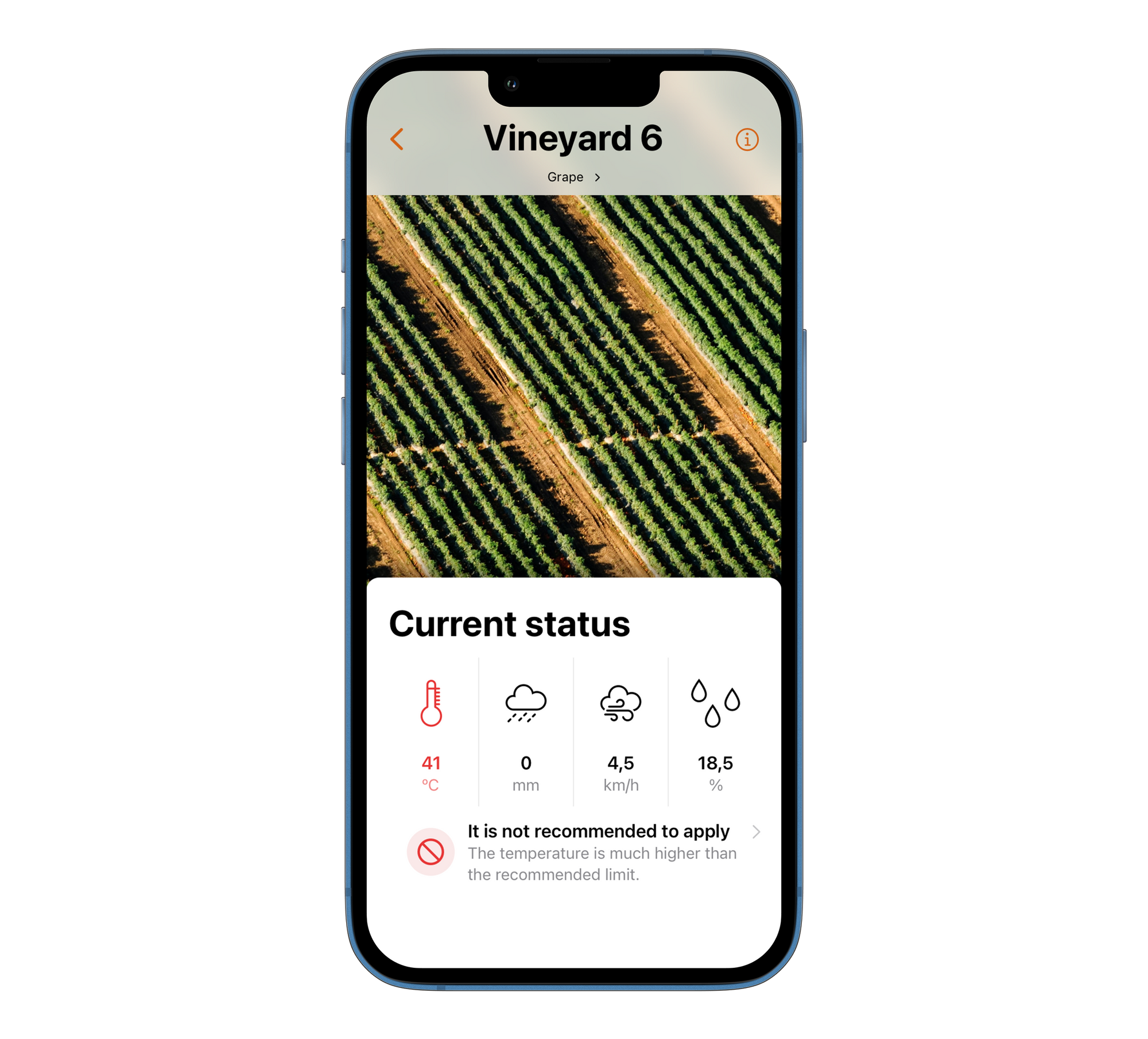 Thanks to feedback from several users, we discovered that it was necessary to create a screen that quickly and visually showed a summary of the situation of a specific plot and concluded whether the conditions were suitable for applying a certain treatment (pesticides, fertilisers...) or not.